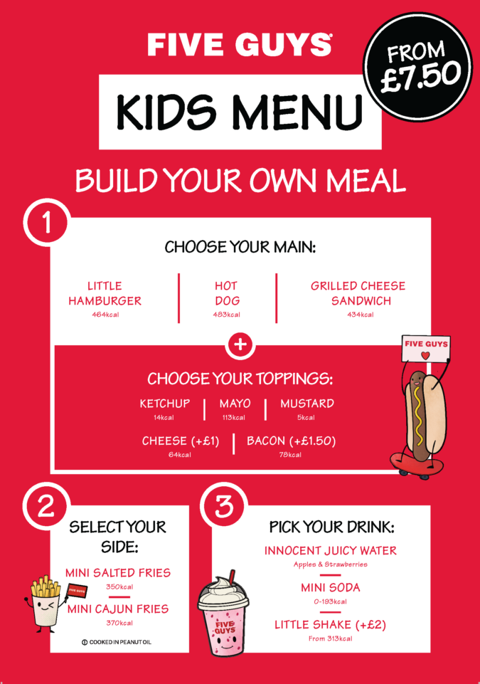 From only £7.50, it includes a choice of Little Hamburger, Hot Dog or Grilled Cheese Sandwich, plus a portion of Mini Fries and a Mini Soda. You can add cheese for an extra £1, bacon for £1.50 and switch your drink to our Little Shake for £2.