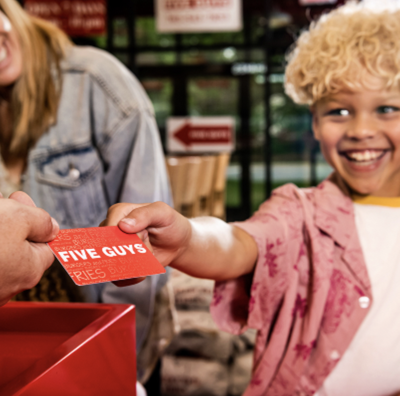 Treat someone to their favourite burgers, fries, and shakes with a Five Guys gift card – perfect for any occasion
