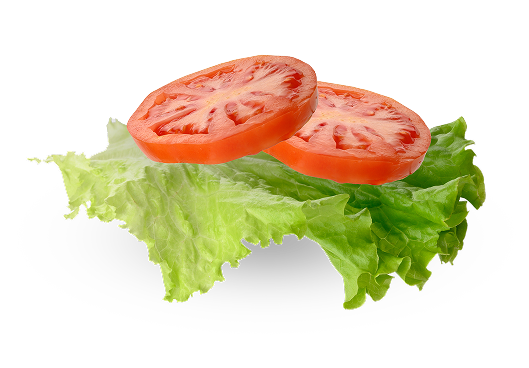 Lettuce, tomatoes, green pepper, onion, pickles, and ketchup